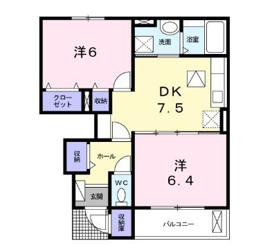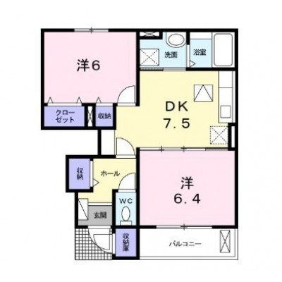 2DK(48.73m²)└ 洋室6帖 DK7.5帖 洋室6帖