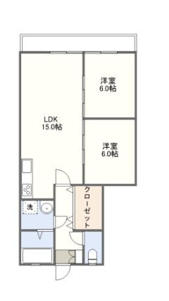 2LDK(59.83m²)└ 洋室6帖 洋室6帖 LDK15帖
