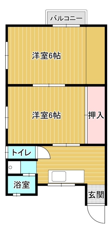 2K└ 洋室6帖 洋室6帖 K