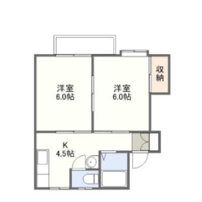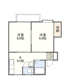 2K(28.5m²)└ 洋室6帖 洋室6帖 K4.5帖