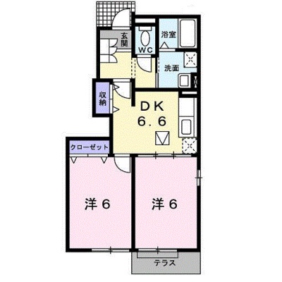 2DK(44.67m²)└ 1階:洋室6帖 洋室6帖 DK6.6帖