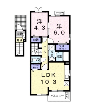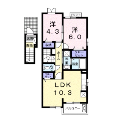 2LDK(52.83m²)└ 洋室4.3帖 洋室6帖 LDK10.3帖