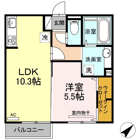 1LDK(40.84m²)└ 2階:洋室5.5帖 LDK10.3帖