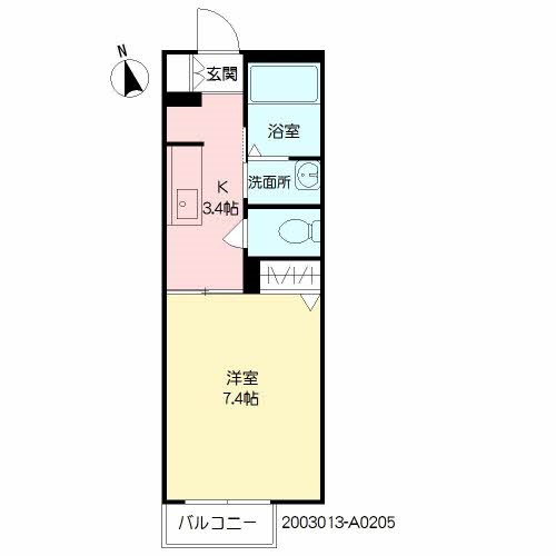 1K(25.67m²)└ K3.4帖 洋室7.4帖