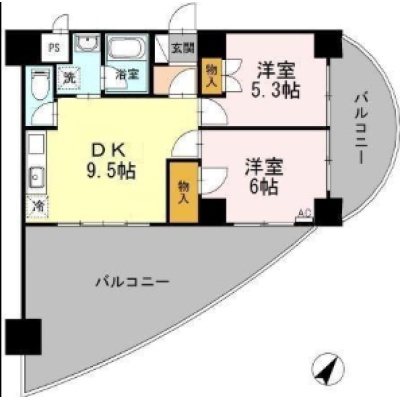 2DK(47.2m²)└ 洋室6帖 洋室5.3帖 DK9.5帖