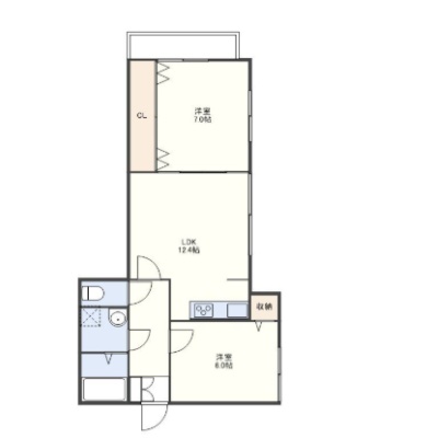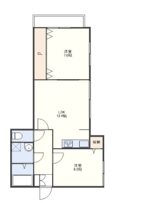 2LDK(57.34m²)└ 洋室7帖 洋室6帖 LDK12.4帖