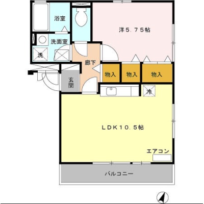 1LDK(40.9m²)└ 洋室5.75帖 LDK10.5帖