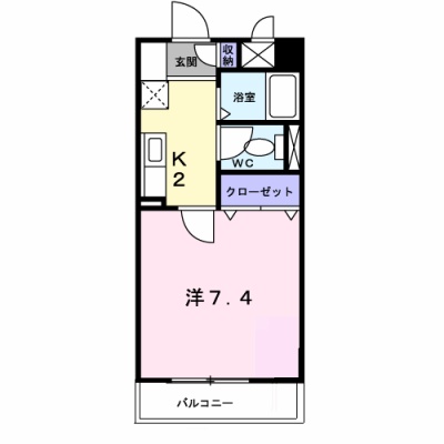 1K(24.99m²)└ 洋室7.4帖 K2帖