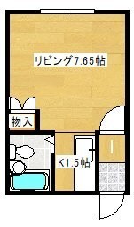 ワンルーム(19m²)└ K1.5帖 LK7.6帖