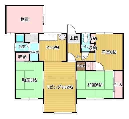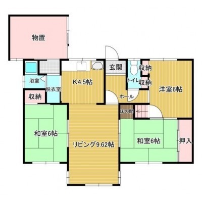 3LDK(61.27m²)└ DK4.5帖 L9.6帖 洋室6帖 和室6帖 和室6帖