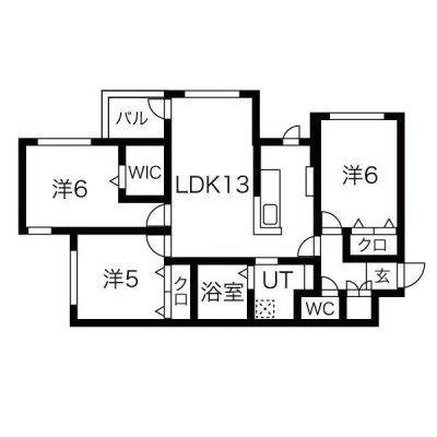 3LDK(66.1m²)└ LDK13帖 洋室6帖 洋室6帖 洋室5帖