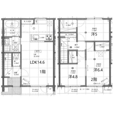3LDK(71.42m²)└ LDK14.6帖 洋室6.4帖 洋室5帖 洋室4.8帖