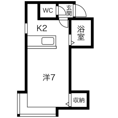 1K(21.6m²)└ K2帖 洋室7帖