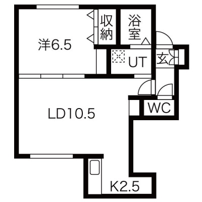 1LDK(42.53m²)└ LD10.5帖 K2.5帖 洋室6.5帖
