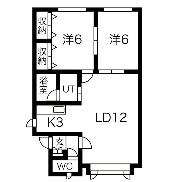 2LDK(59.94m²)└ LD12帖 K3帖 洋室6帖 洋室6帖