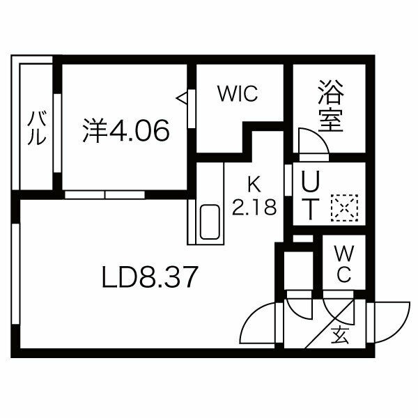 1LDK(35.67m²)└ LD8.37帖 洋室4.06帖 K2.18帖