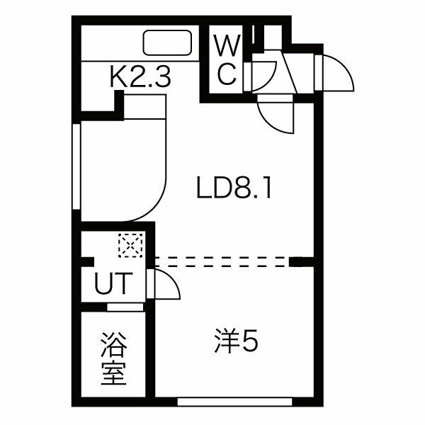 1LDK(32.18m²)└ LD8.1帖 洋室5帖 K2.3帖