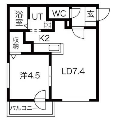 1LDK(32.02m²)└ LD7.4帖 K2帖 洋室4.5帖