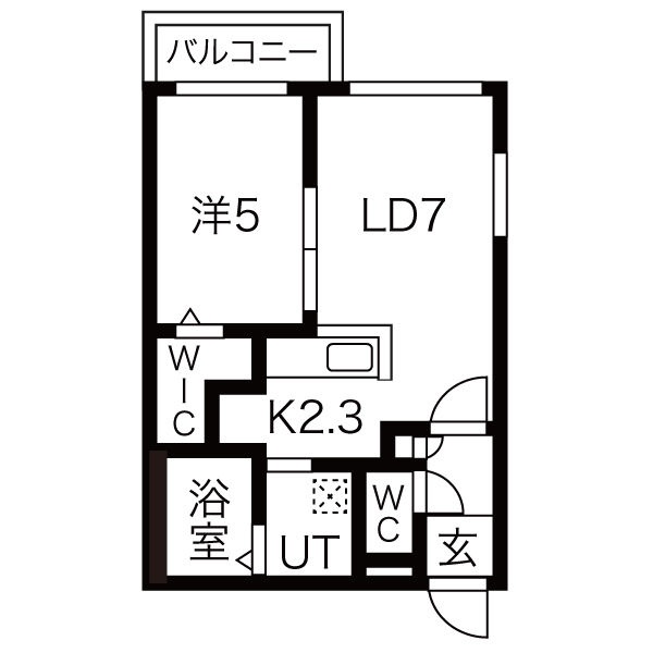 1LDK(34.3m²)└ LD7帖 洋室5帖 K2.3帖