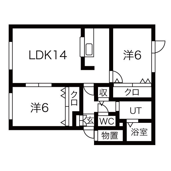 2LDK(60.07m²)└ LDK14帖 洋室6帖 洋室6帖