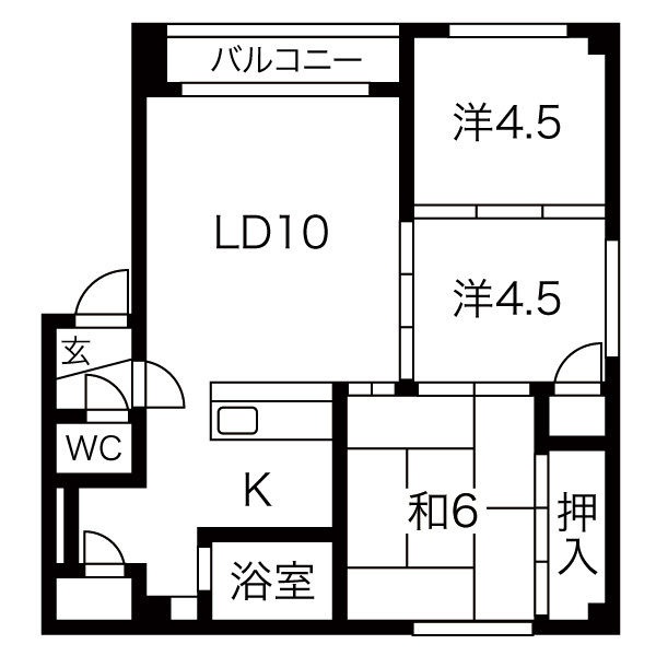 3LDK(59.09m²)└ LD10帖 洋室4.5帖 洋室4.5帖 和室6帖