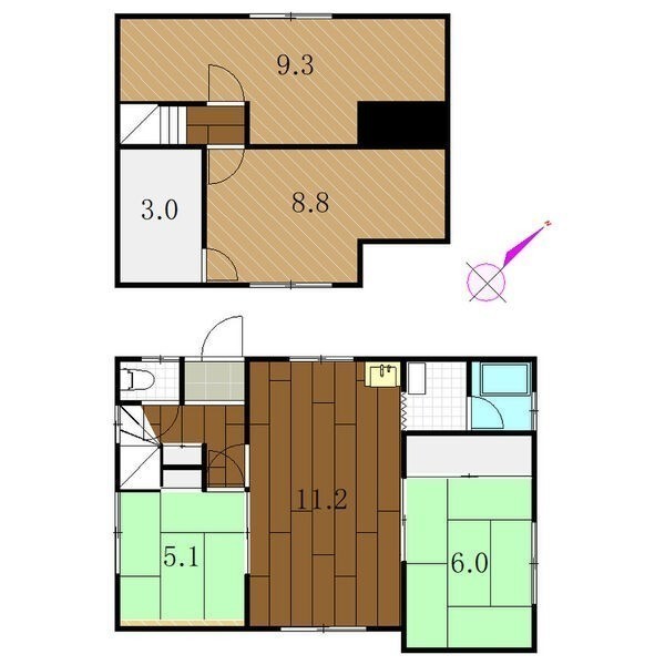 建物の階建 地上2階建 総戸数 構造 木造 間取り 4SLDKLDK11.2帖 和室6帖 和室5.1帖 洋室9.3帖 洋室8.8帖 S3帖 契約期間 2年間 権利金 住宅保険 お問合せください その他費用 一時金 - 退去時清掃料:6万500円