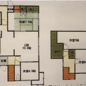 4LDK(94.97m²)└ LDK13.5帖 和室6帖 和室7.5帖 洋室7帖 洋室4.5帖