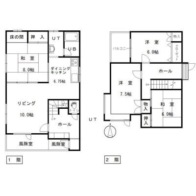 4LDK└ 1階:LDK16.75帖 和室8帖 / 2階:洋室7.5帖 洋室8帖 和室6帖