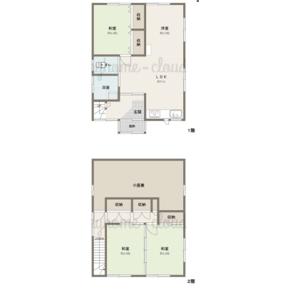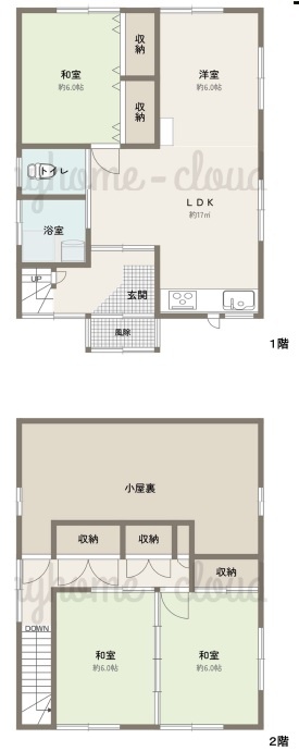3LDK(104m²)└ 1階:LDK16帖 和室6帖 / 2階:和室6帖 和室6帖