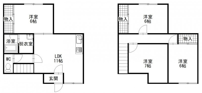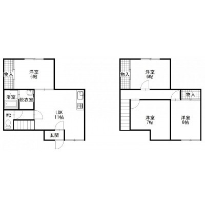 4LDK(80.39m²)└ 1階:LDK11帖 洋室6帖 / 2階:洋室6帖 洋室6帖 洋室7帖