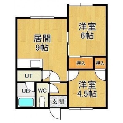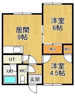 2LDK(42.56m²)└ DK9帖 洋室6帖 洋室4.5帖