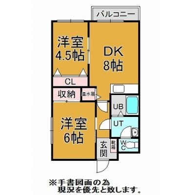2DK(44.55m²)└ DK8帖 洋室6帖 洋室4.5帖