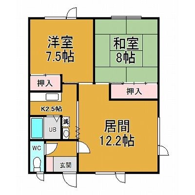 2LDK└ LDK12.25帖 和室8帖 洋室7.5帖