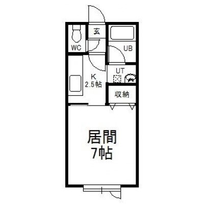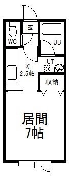 1K(22.32m²)└ 洋室7帖 K2.5帖