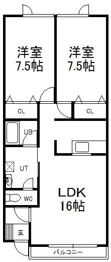 2LDK└ LDK16帖 洋室7.5帖 洋室7.5帖