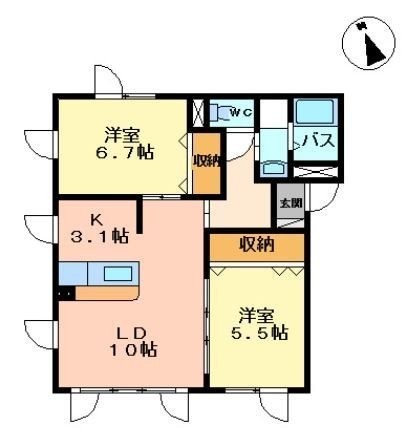 2LDK(57.07m²)└ LDK13.1帖 洋室6.7帖 洋室5.5帖