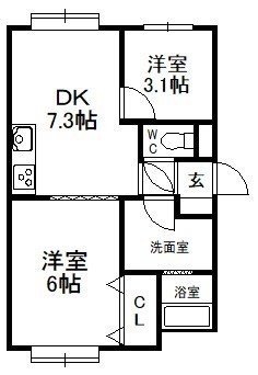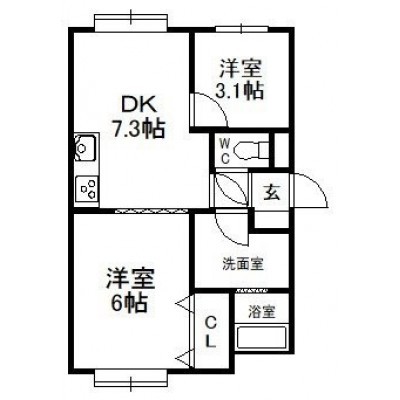 2DK└ DK7.3帖 洋室6帖 洋室3.1帖