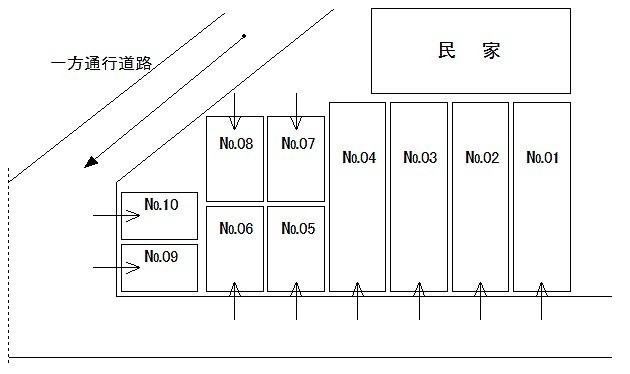 ここに注目!【当社管理物件】 現空き:№06・07 №01~04:6,000円(縦列可能) №05~10:4,000円