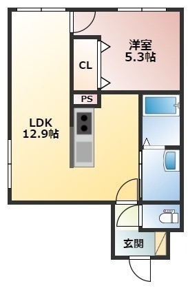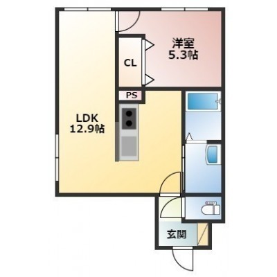 1LDK(40.43m²)└ LDK12.9帖 洋室5.3帖