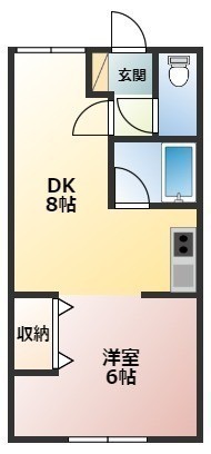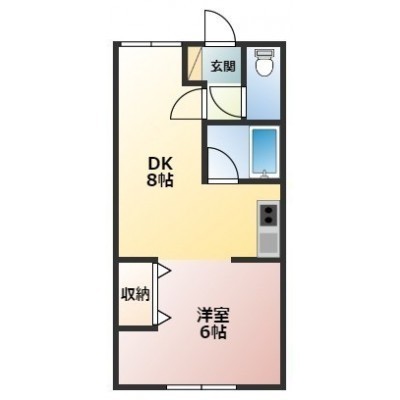 1DK(32.64m²)└ DK8帖 洋室6帖