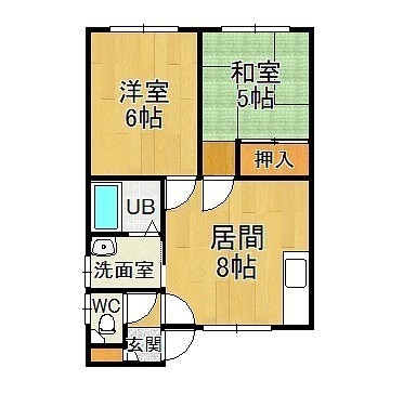 2DK(46.28m²)└ DK8帖 洋室6帖 和室5帖