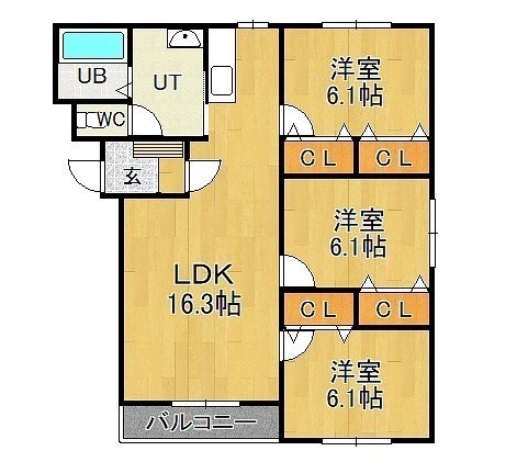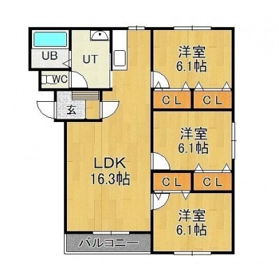 3LDK(68m²)└ LDK16.3帖 洋室6.1帖 洋室6.1帖 洋室6.1帖