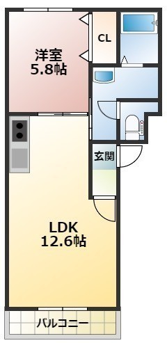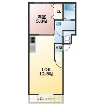 1LDK(46.35m²)└ LDK12.6帖 洋室5.8帖