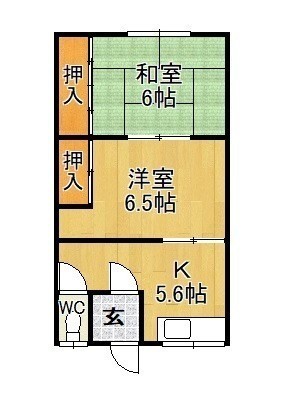 1DK└ 洋室6.5帖 和室6帖 K3.75帖