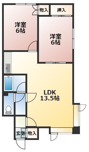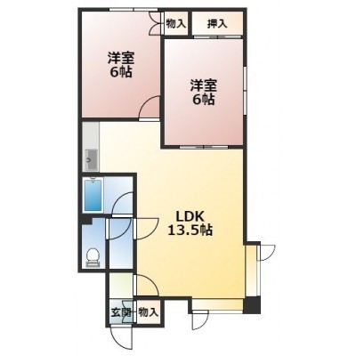 2LDK└ LDK13.5帖 洋室6帖 洋室6帖