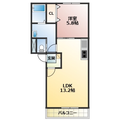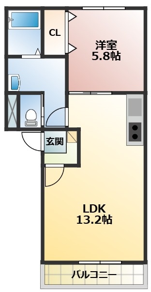 1LDK(43.13m²)└ LDK13.2帖 洋室5.8帖