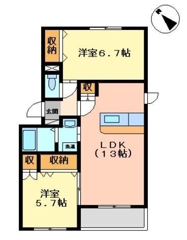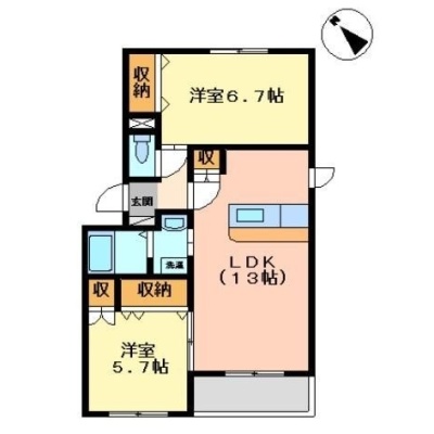 2LDK(56.66m²)└ LDK13帖 洋室6.7帖 洋室5.7帖