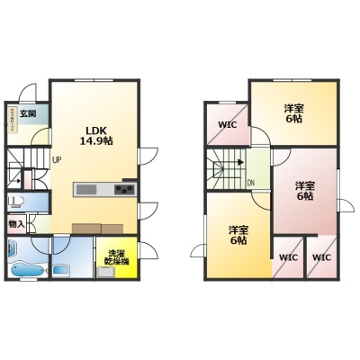 3LDK(86.94m²)└ 1階:LDK14.9帖 / 2階:洋室6帖 洋室6帖 洋室6帖