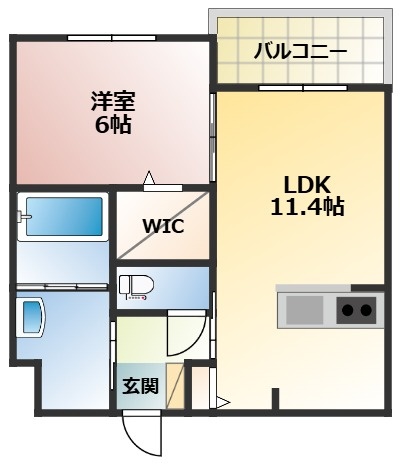 1LDK(42.62m²)└ LDK11.4帖 洋室6帖