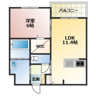 1LDK(42.62m²)└ LDK11.4帖 洋室6帖